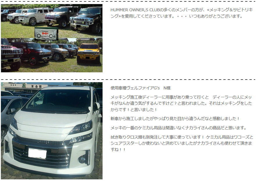 | Many members of HUMMER OWNERS CLUB use MEKKING and SABITORIKING. Thank you so much. |