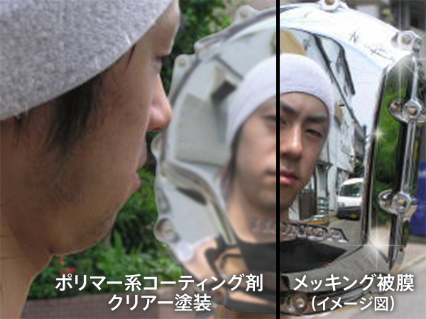 メッキング被膜は薄い被膜を重ね塗布、重ね塗布することでメッキ面の鏡面度が改善されていきます。クロムメッキ用の光沢剤も配合していますで、薄く被膜を重ね塗布、重ね塗布することで光沢がUPしていきます