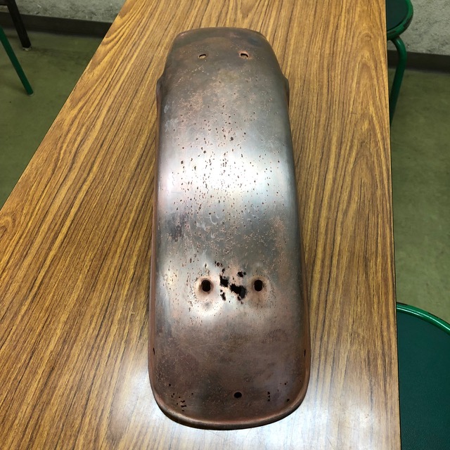 スズキGT380フェンダーメッキ剥離後穴があいた